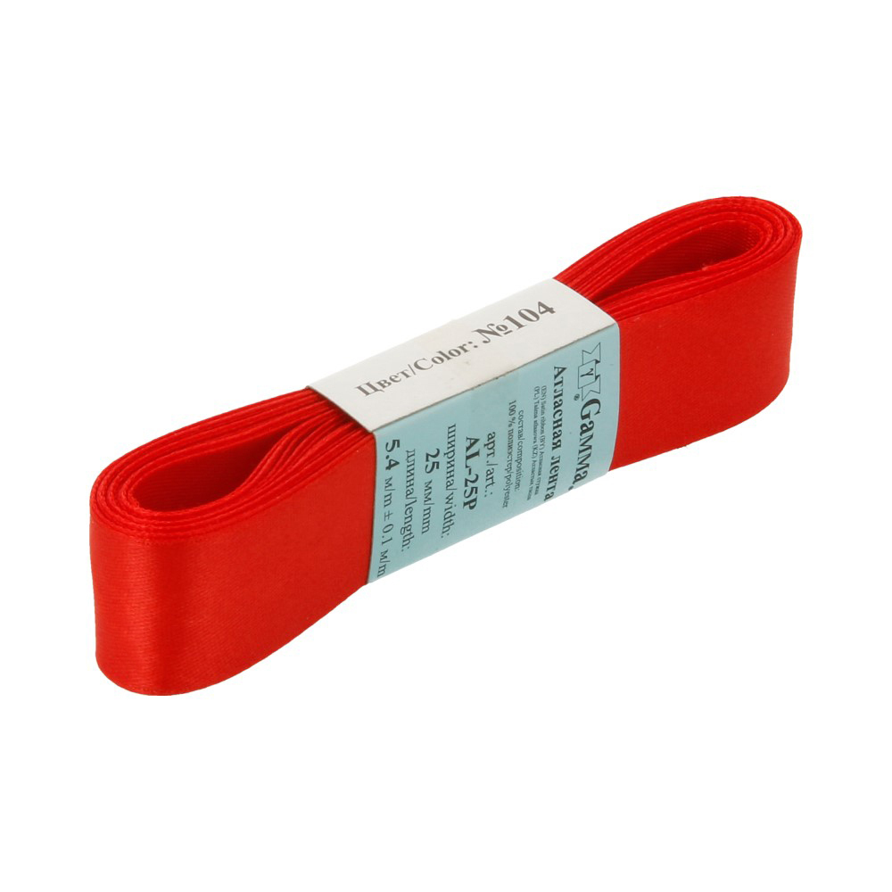 Лента атласная 1-сторонняя 25.0 мм / 5 шт по 5.4 метра, №104 т.красный, Gamma AL-25P