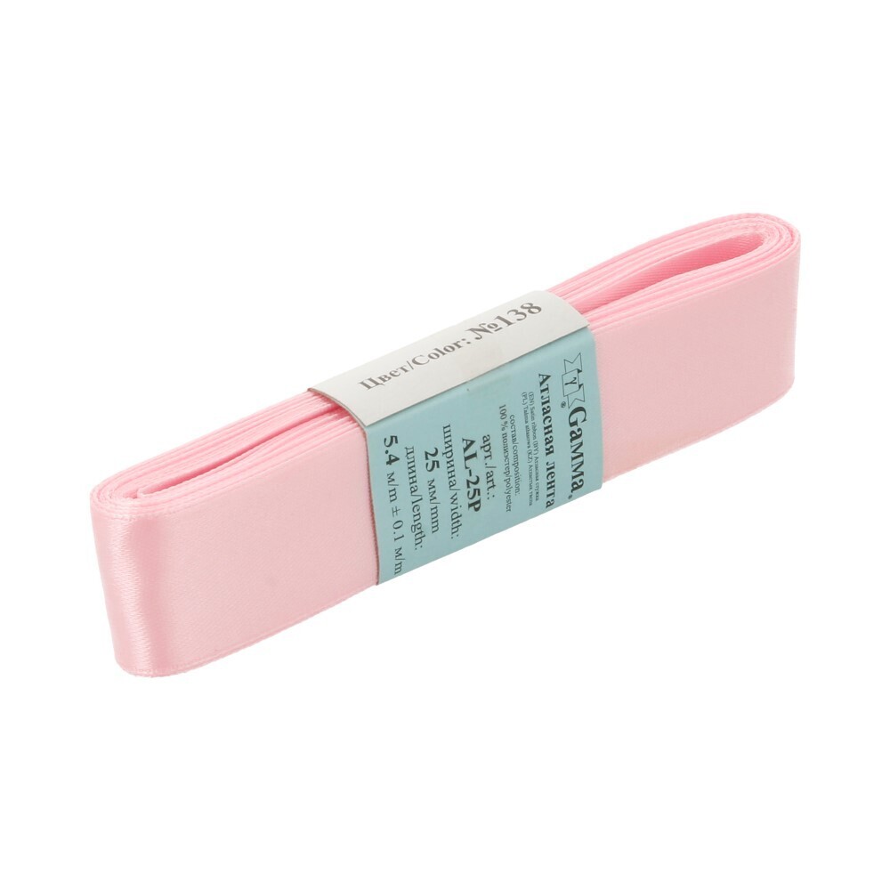Лента атласная 1-сторонняя 25.0 мм / 5 шт по 5.4 метра, №138 розовый, Gamma AL-25P