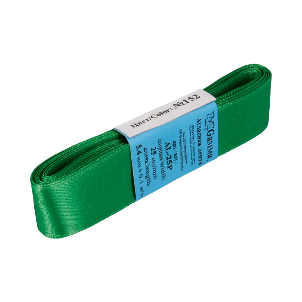 Лента атласная 1-сторонняя 25.0 мм / 5 шт по 5.4 метра, №152 зеленый, Gamma AL-25P