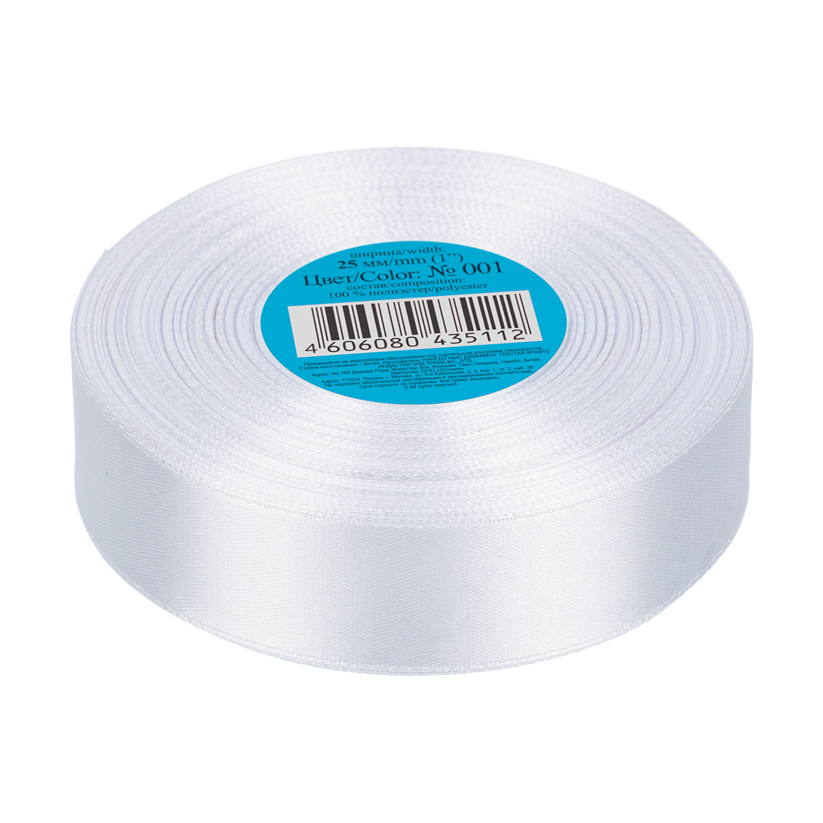 Лента атласная 1-сторонняя 25.0 мм / 33±2 метра, №001 белый, в термоплёнке, Gamma