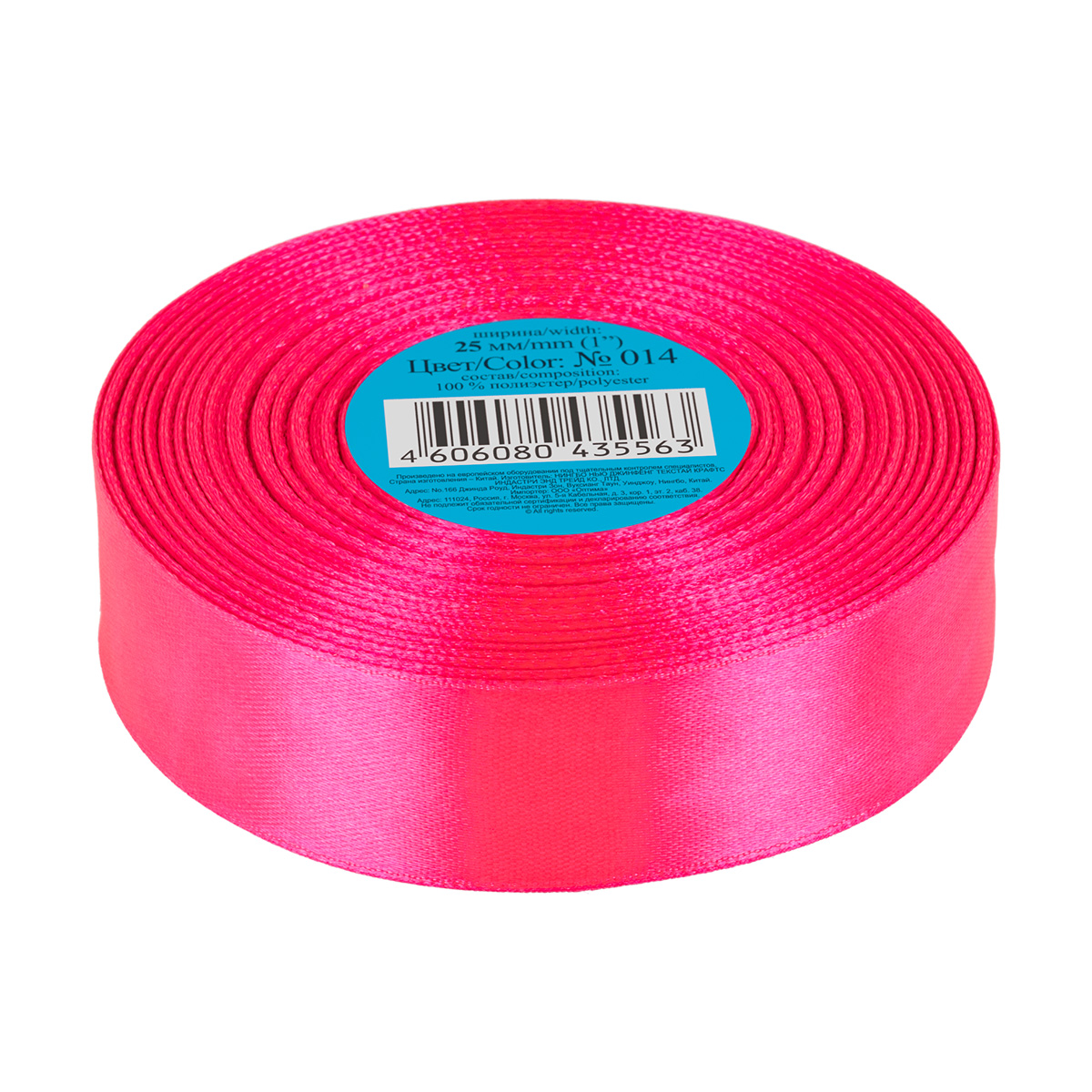 Лента атласная 1-сторонняя 25.0 мм / 33±2 метра, №014 яр.розовый, в термоплёнке, Gamma