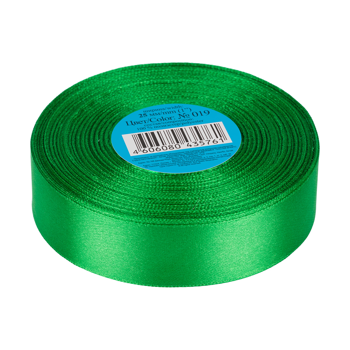 Лента атласная 1-сторонняя 25.0 мм / 33±2 метра, №019 зеленый, в термоплёнке, Gamma