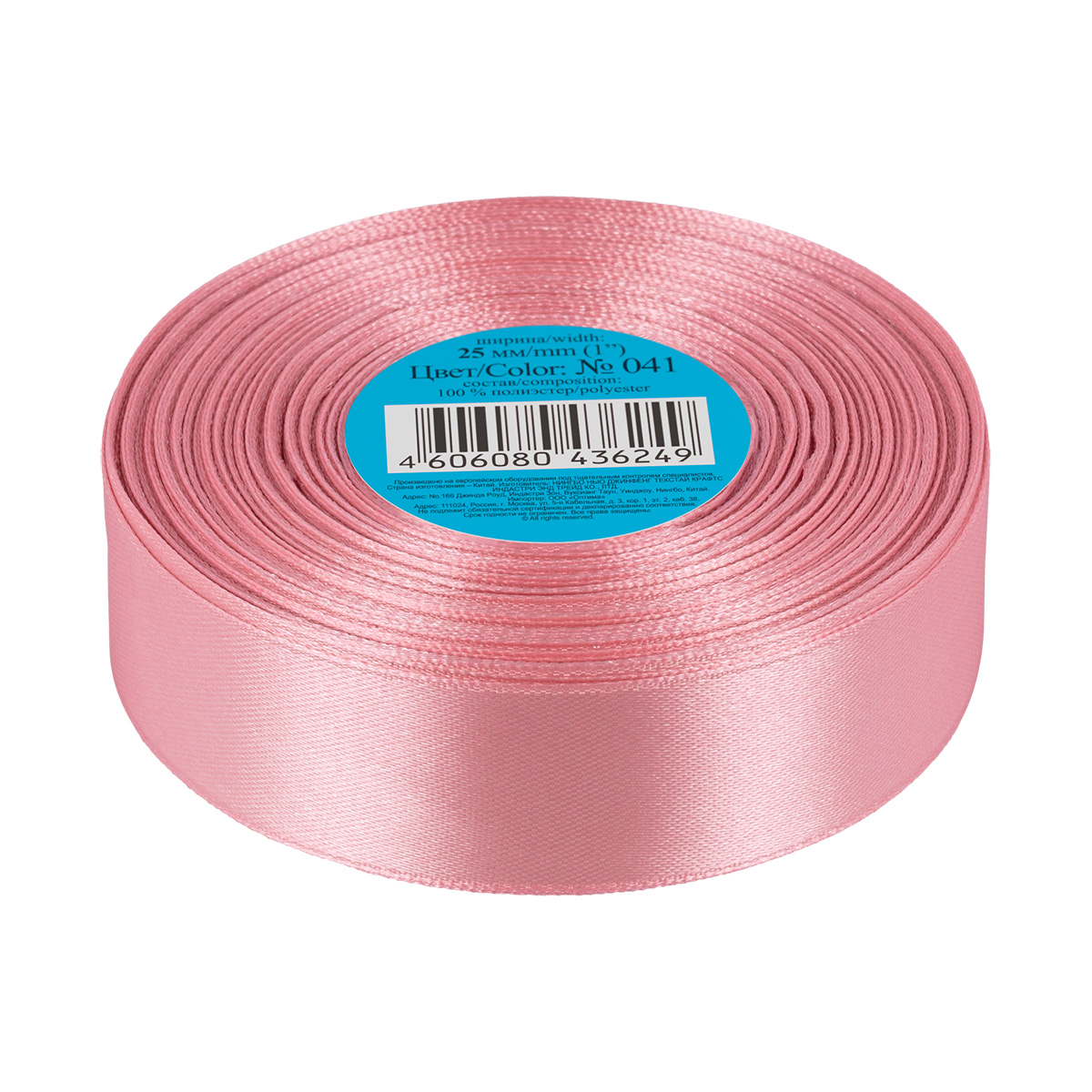 Лента атласная 1-сторонняя 25.0 мм / 33±2 метра, №041 розовый, в термоплёнке, Gamma