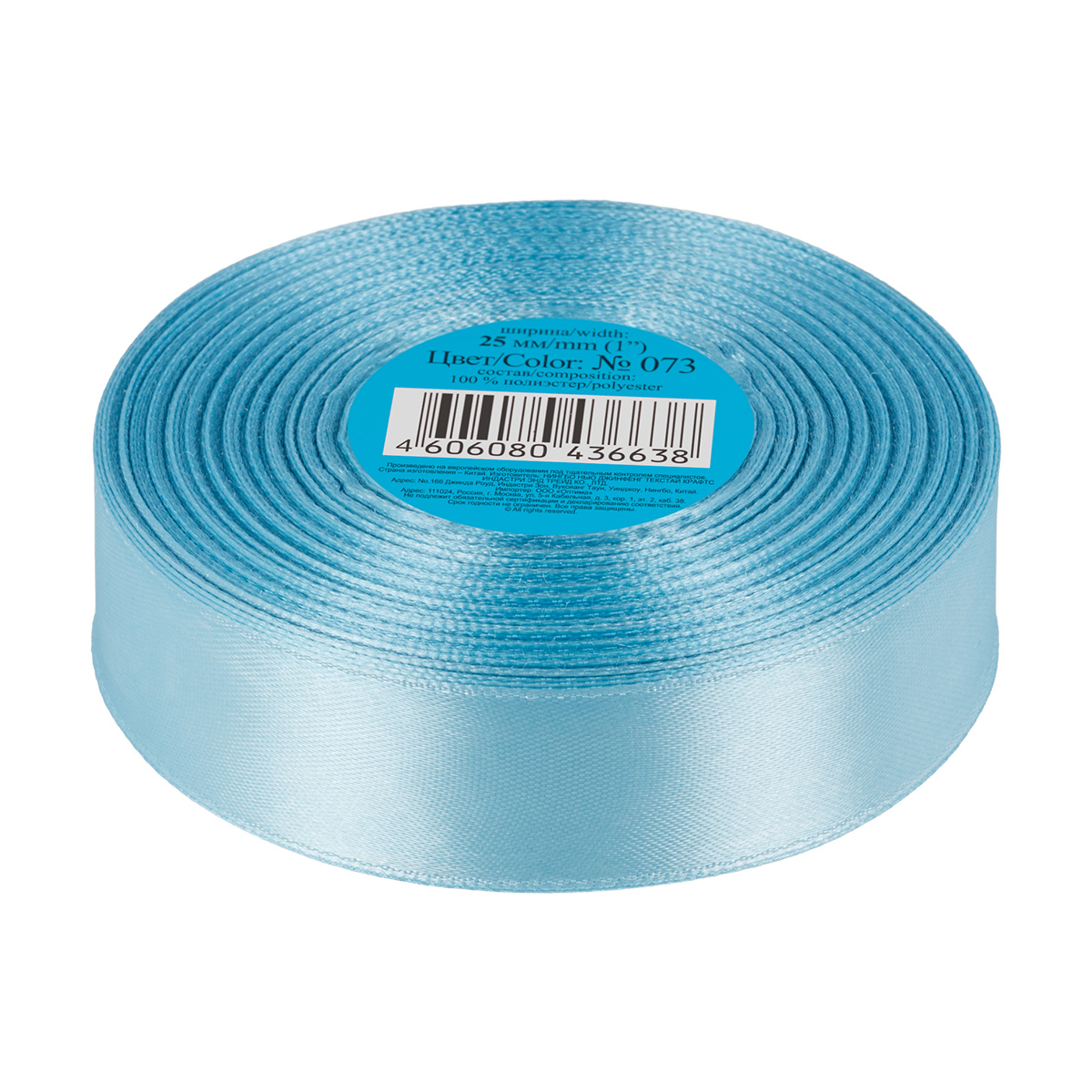 Лента атласная 1-сторонняя 25.0 мм / 33±2 метра, №073 бл.синий, в термоплёнке, Gamma