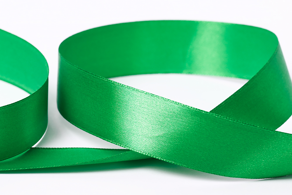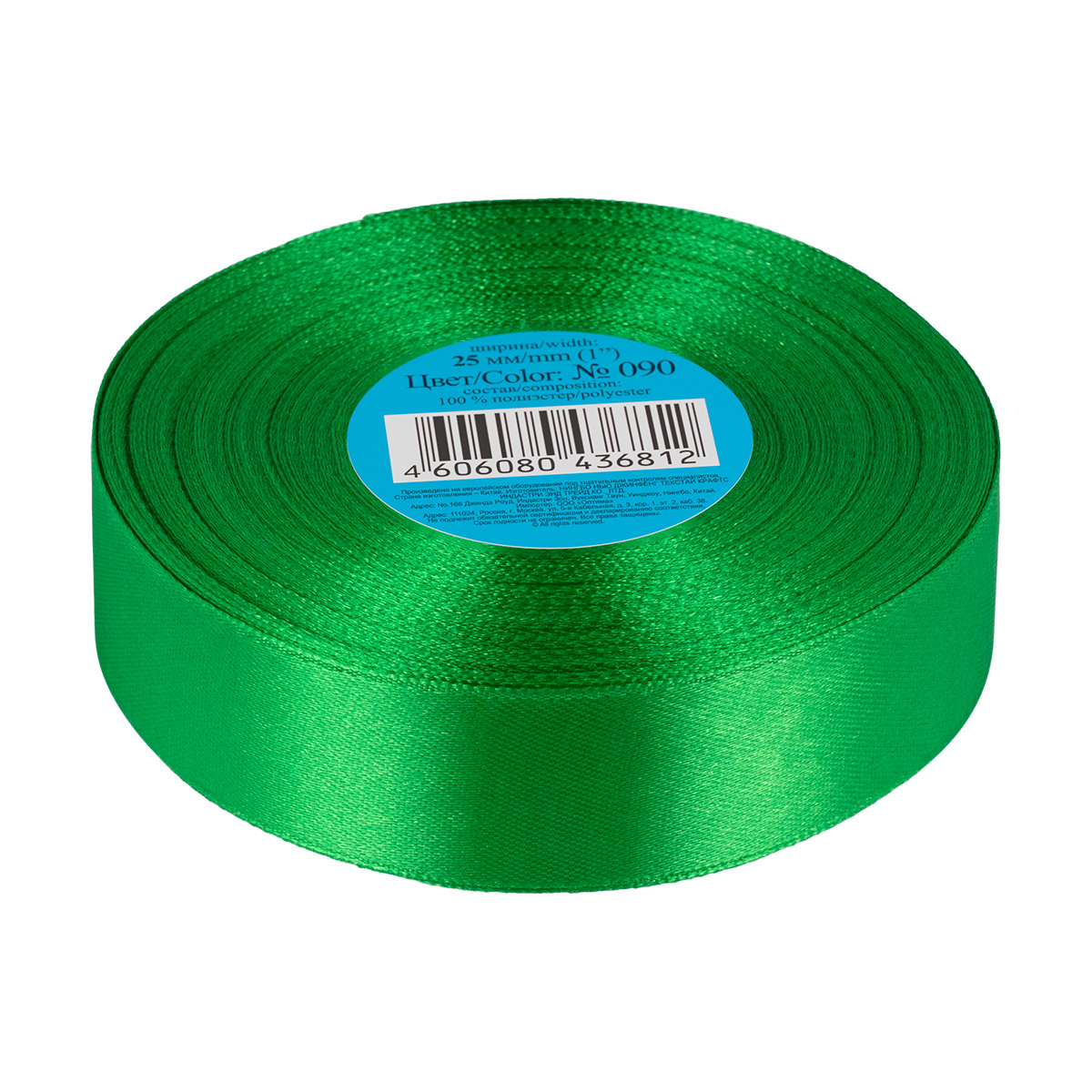 Лента атласная 1-сторонняя 25.0 мм / 33±2 метра, №090 ярко-зеленый, в термоплёнке, Gamma