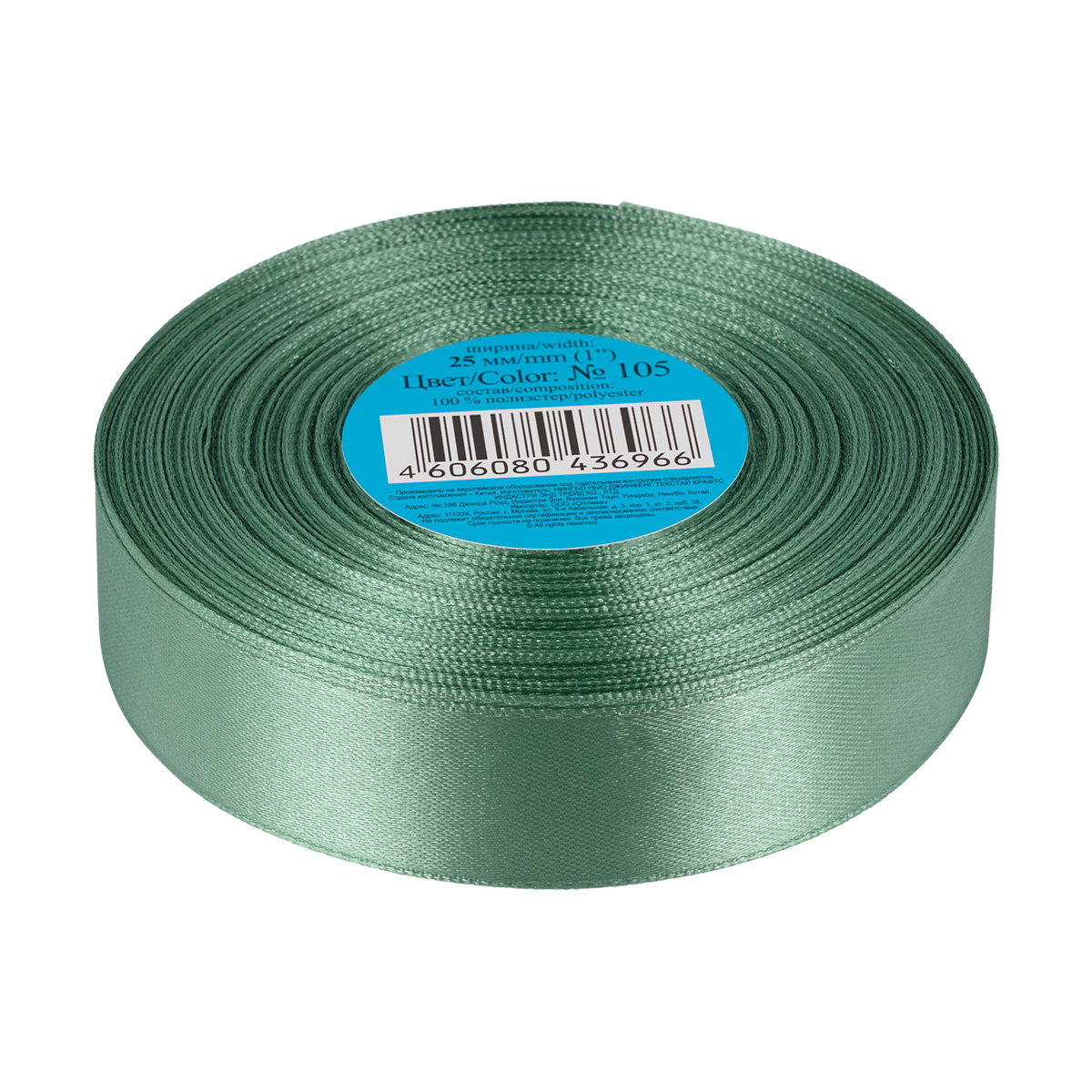 Лента атласная 1-сторонняя 25.0 мм / 33±2 метра, №105 зеленый, в термоплёнке, Gamma