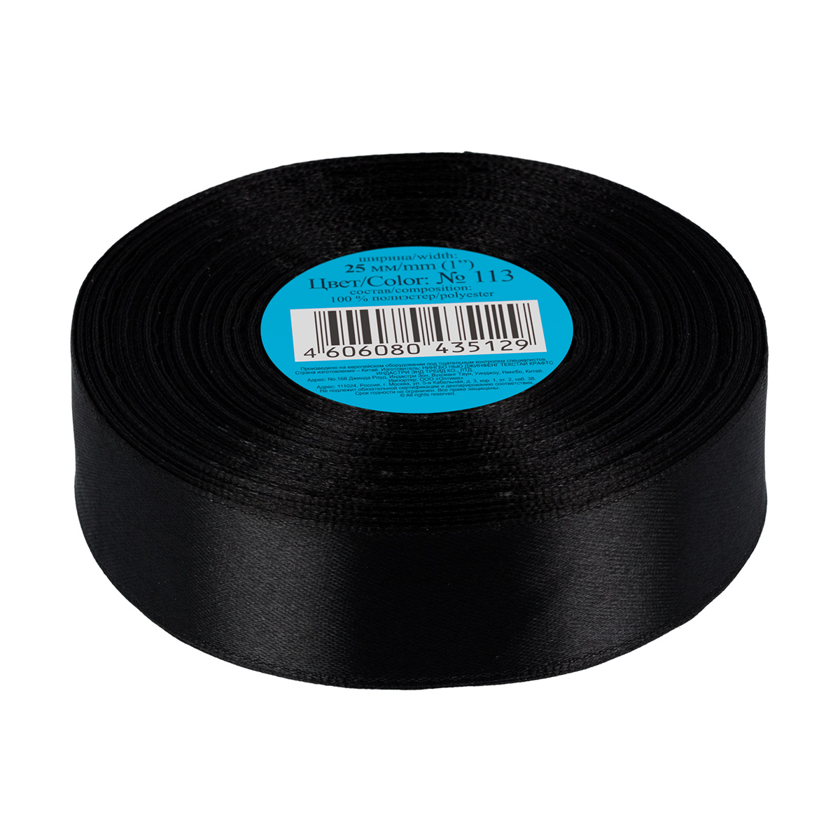 Лента атласная 1-сторонняя 25.0 мм / 33±2 метра, №113 черный, в термоплёнке, Gamma