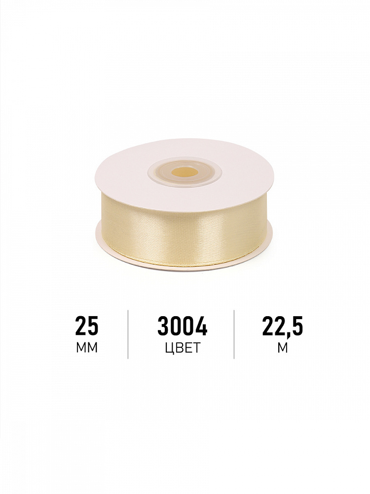 Лента атласная 1-сторонняя 25.0 мм / 22.5±1 метра, 3004 св.кремовый, Magic4Hobby