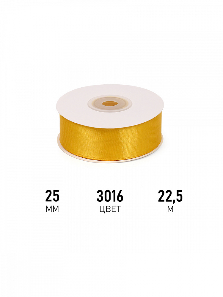 Лента атласная 1-сторонняя 25.0 мм / 22.5±1 метра, 3016 т.желтый, Magic4Hobby