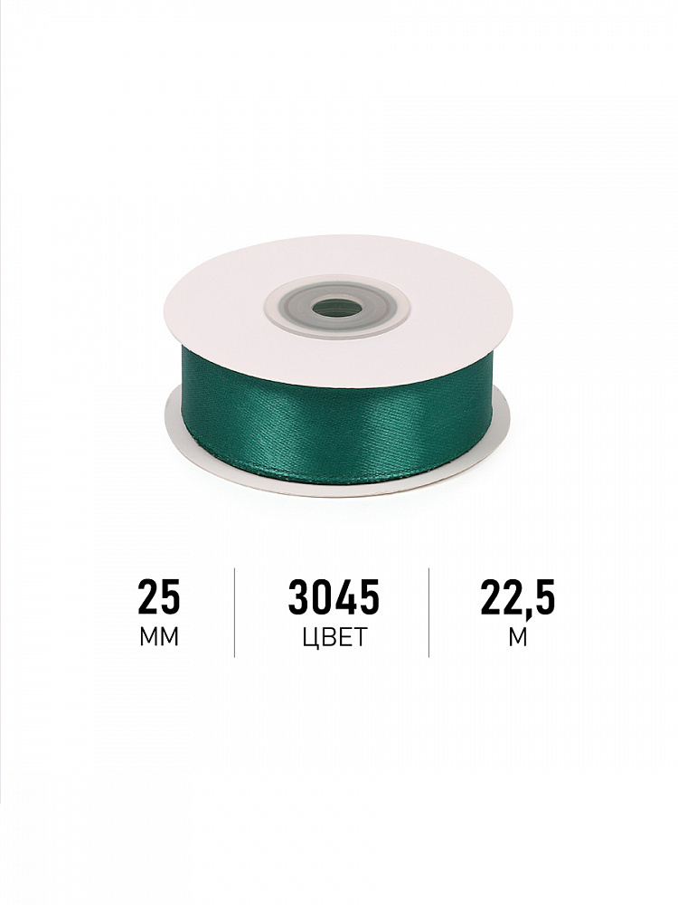 Лента атласная 1-сторонняя 25.0 мм / 22.5±1 метра, 3045 изумрудный, Magic4Hobby