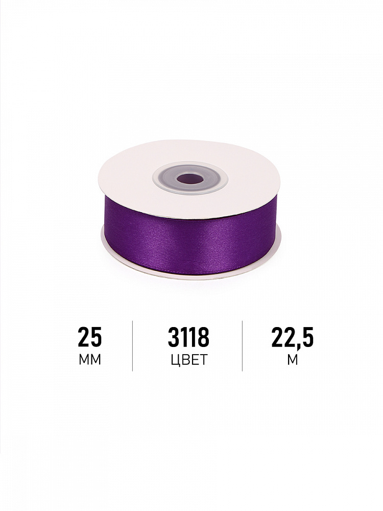 Лента атласная 1-сторонняя 25.0 мм / 22.5±1 метра, 3118 фиолетовый, Magic4Hobby