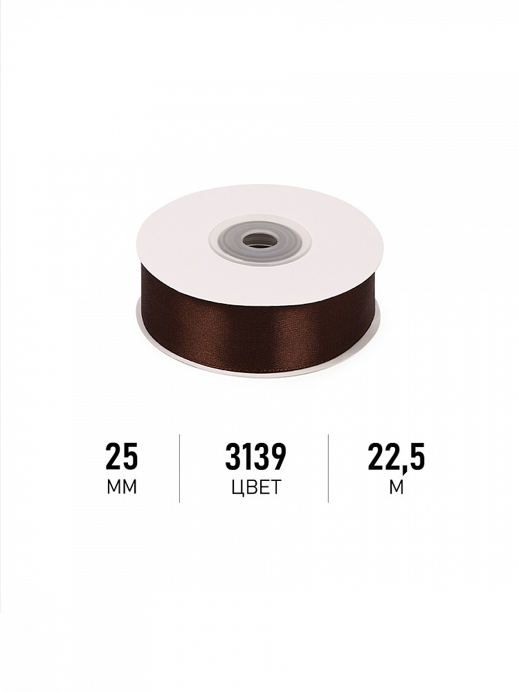 Лента атласная 1-сторонняя 25.0 мм / 22.5±1 метра, 3139 т.коричневый, Magic4Hobby