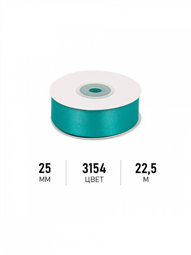 Лента атласная 1-сторонняя 25.0 мм / 22.5±1 метра, 3154 сине-зеленый, Magic4Hobby