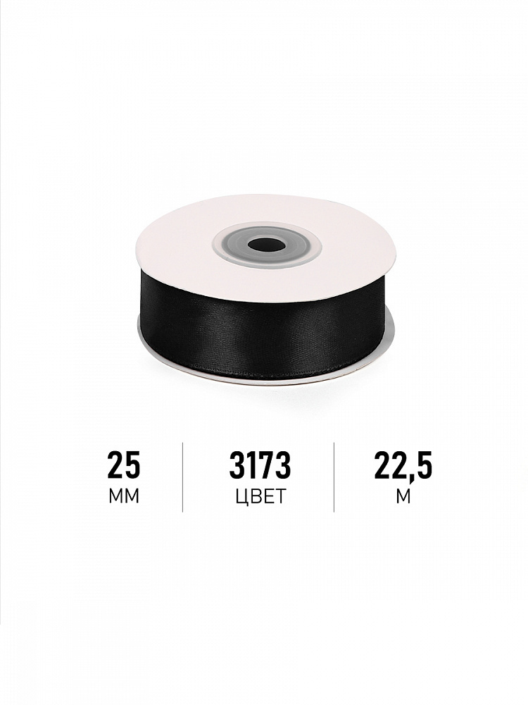 Лента атласная 1-сторонняя 25.0 мм / 22.5±1 метра, 3173 черный, Magic4Hobby