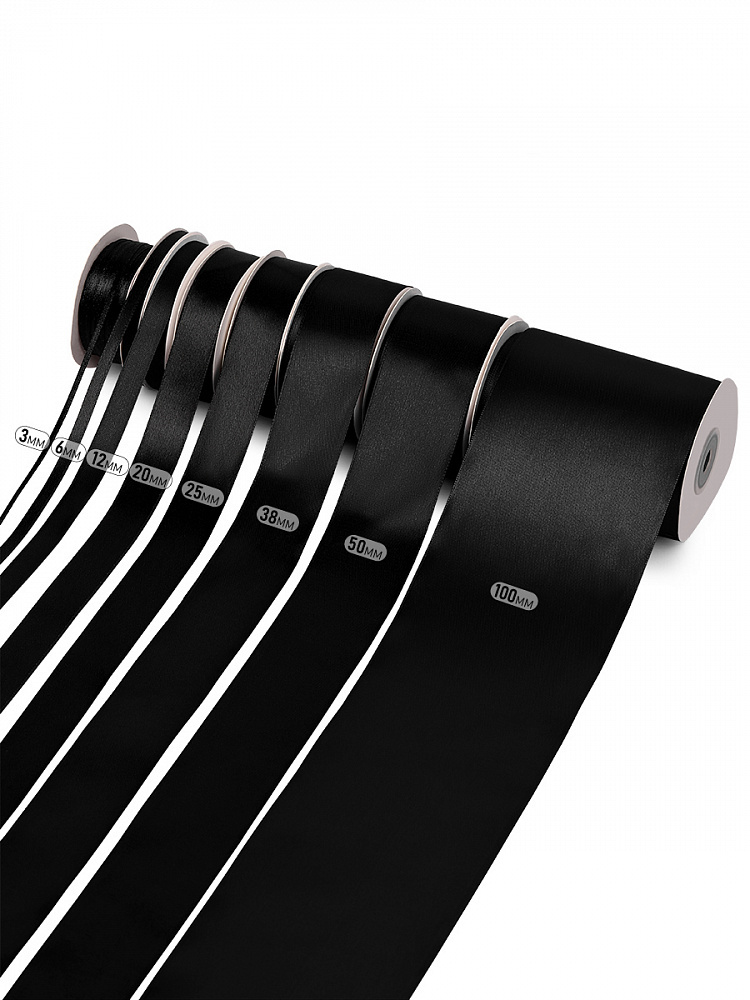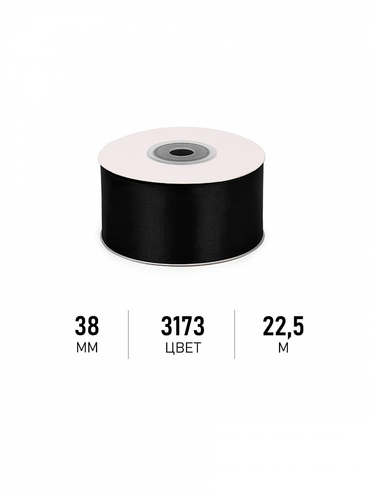 Лента атласная 1-сторонняя 38.0 мм / 22.5±1 метра, 3173 черный, Magic4Hobby