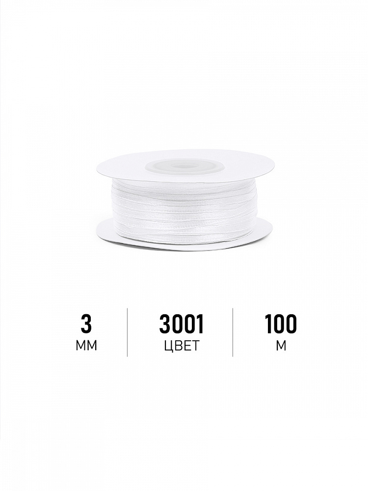 Лента атласная 1-сторонняя 3.0 мм / 100±1 метров, 3001 кипенно-белый, Magic4Hobby