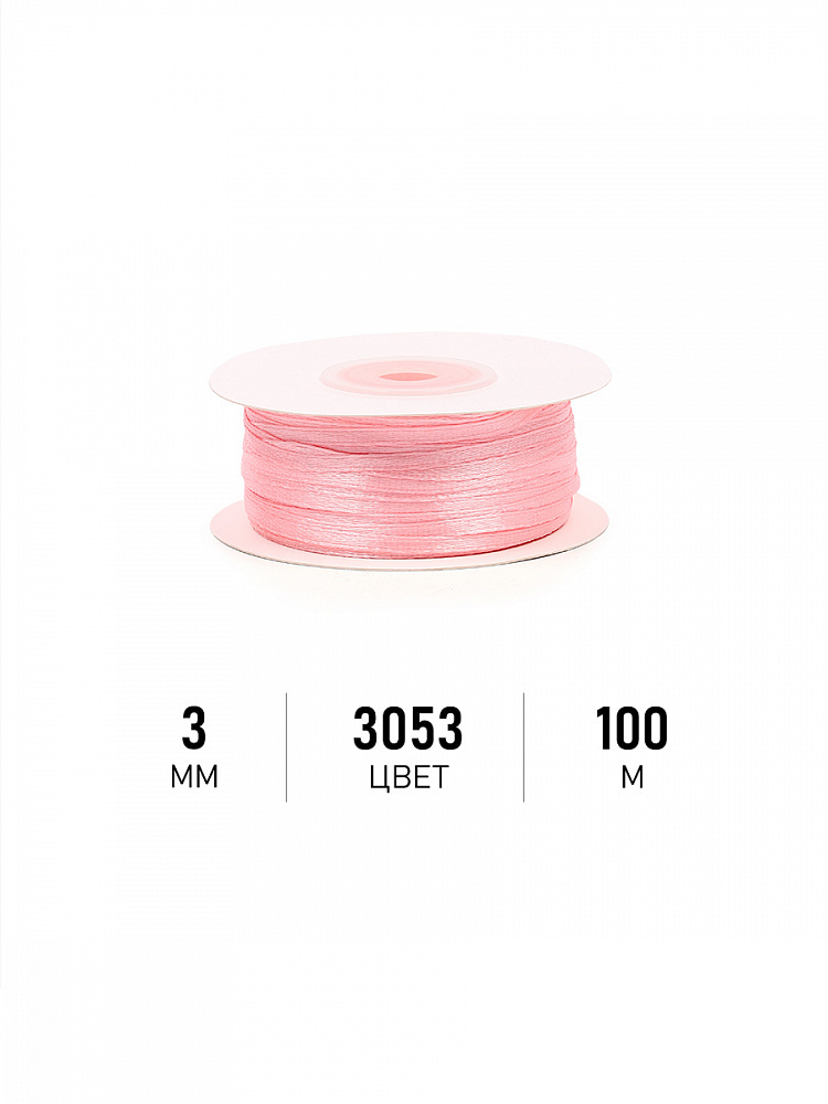 Лента атласная 1-сторонняя 3.0 мм / 100±1 метров, 3053 св.розовый, Magic4Hobby