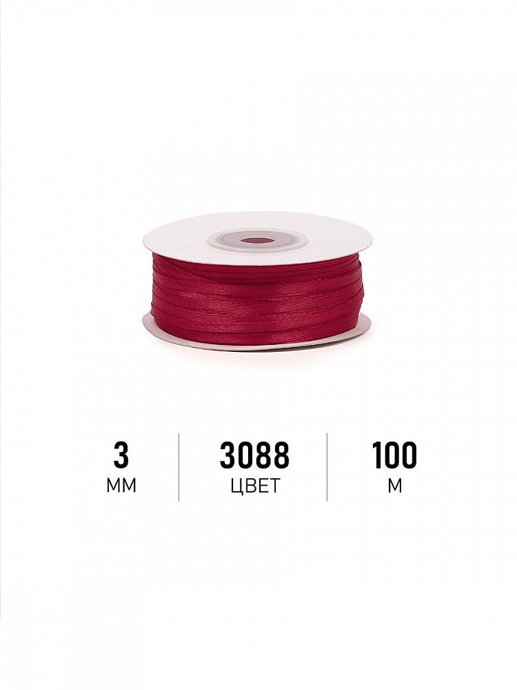 Лента атласная 1-сторонняя 3.0 мм / 100±1 метров, 3088 т.бордовый, 100м (±1м), Magic4Hobby