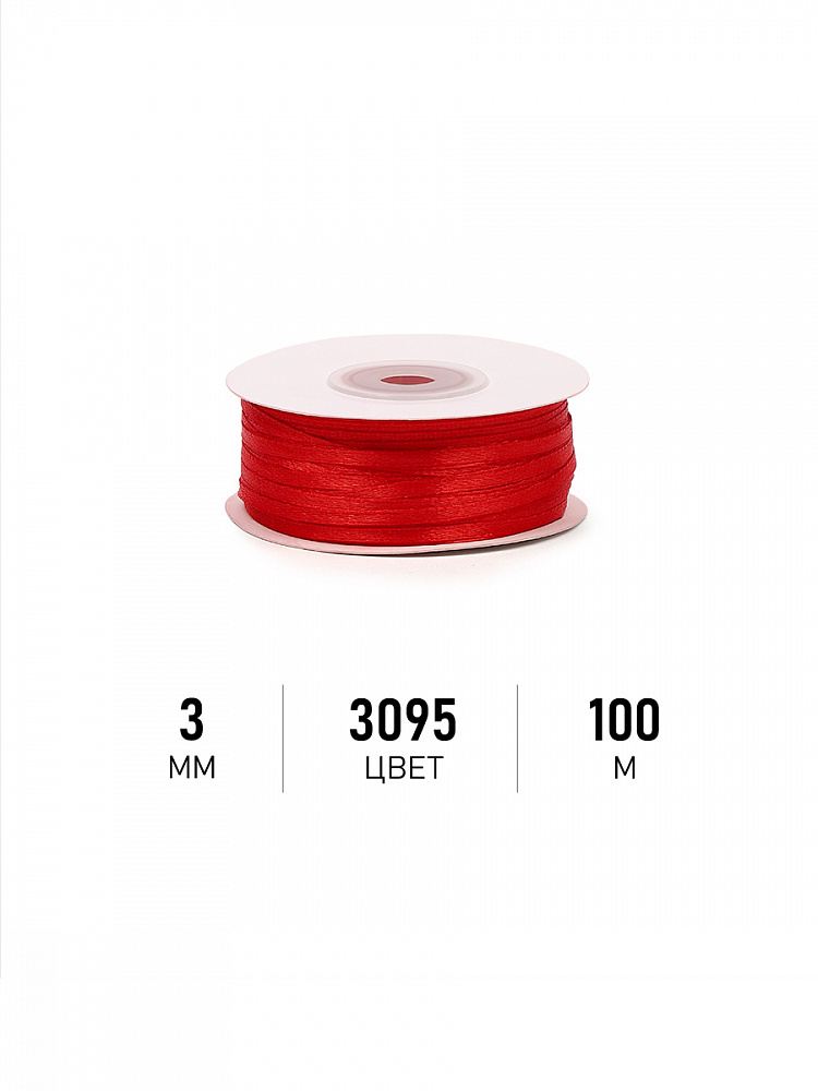 Лента атласная 1-сторонняя 3.0 мм / 100±1 метров, 3095 красный, Magic4Hobby