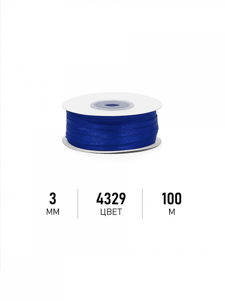 Лента атласная 1-сторонняя 3.0 мм / 100±1 метров, 4329 василек, Magic4Hobby