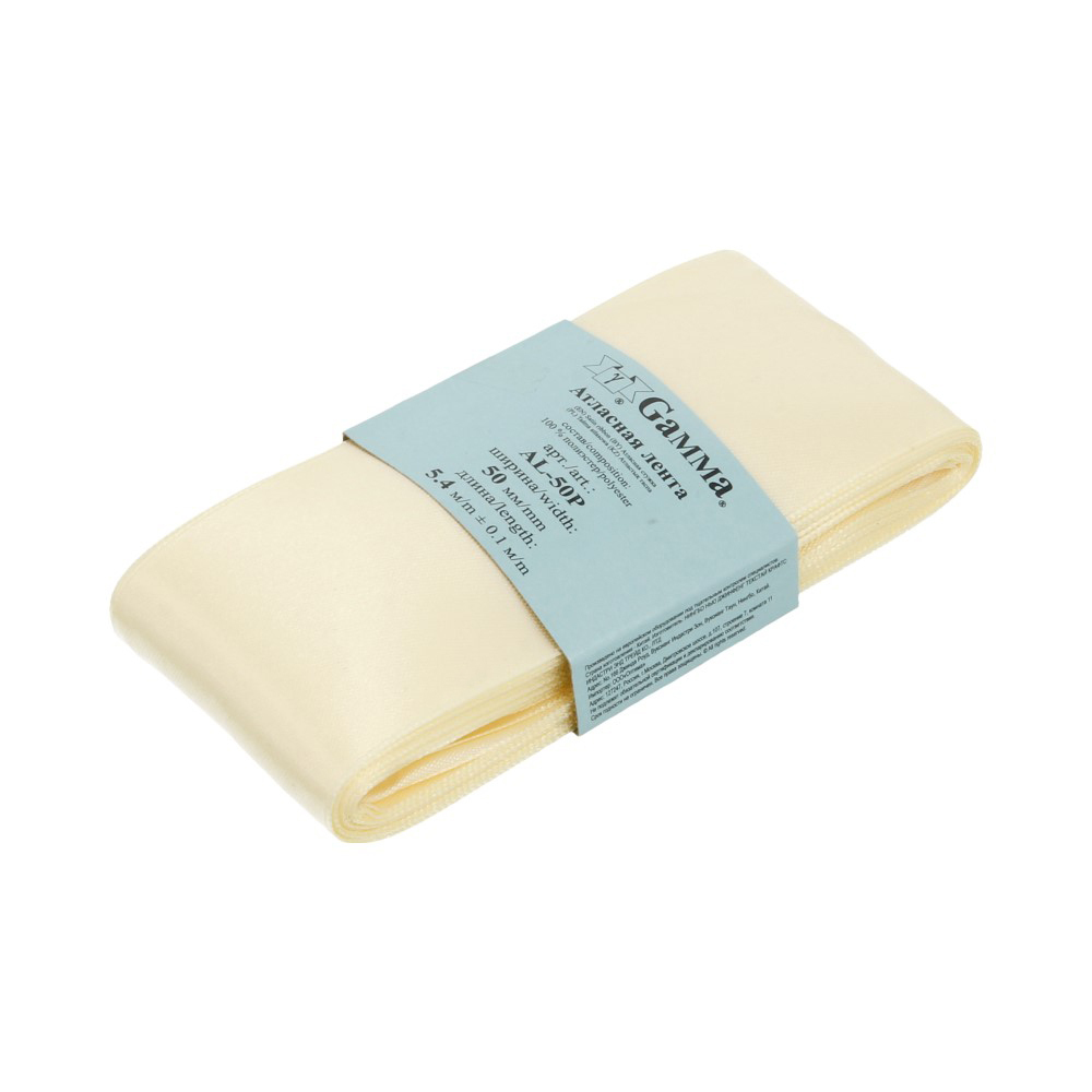 Лента атласная 1-сторонняя 50.0 мм / 5 шт по 5.4 метра, №008 кремовый, Gamma AL-50P