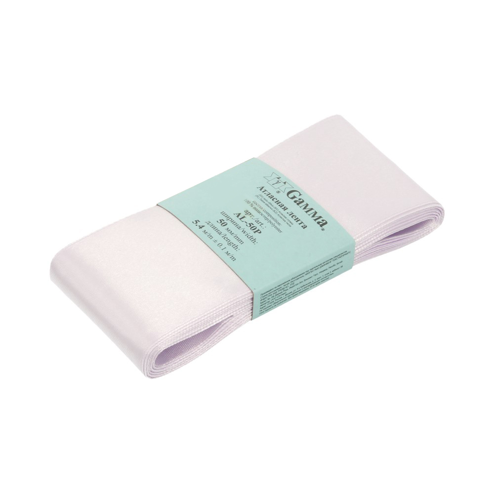 Лента атласная 1-сторонняя 50.0 мм / 5 шт по 5.4 метра, №044 св.сиреневый, Gamma AL-50P