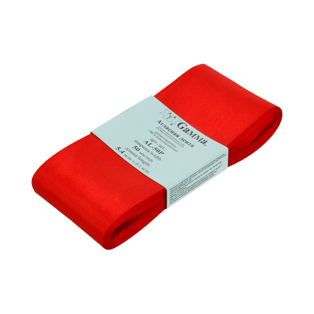 Лента атласная 1-сторонняя 50.0 мм / 5 шт по 5.4 метра, №104 т.красный, Gamma AL-50P