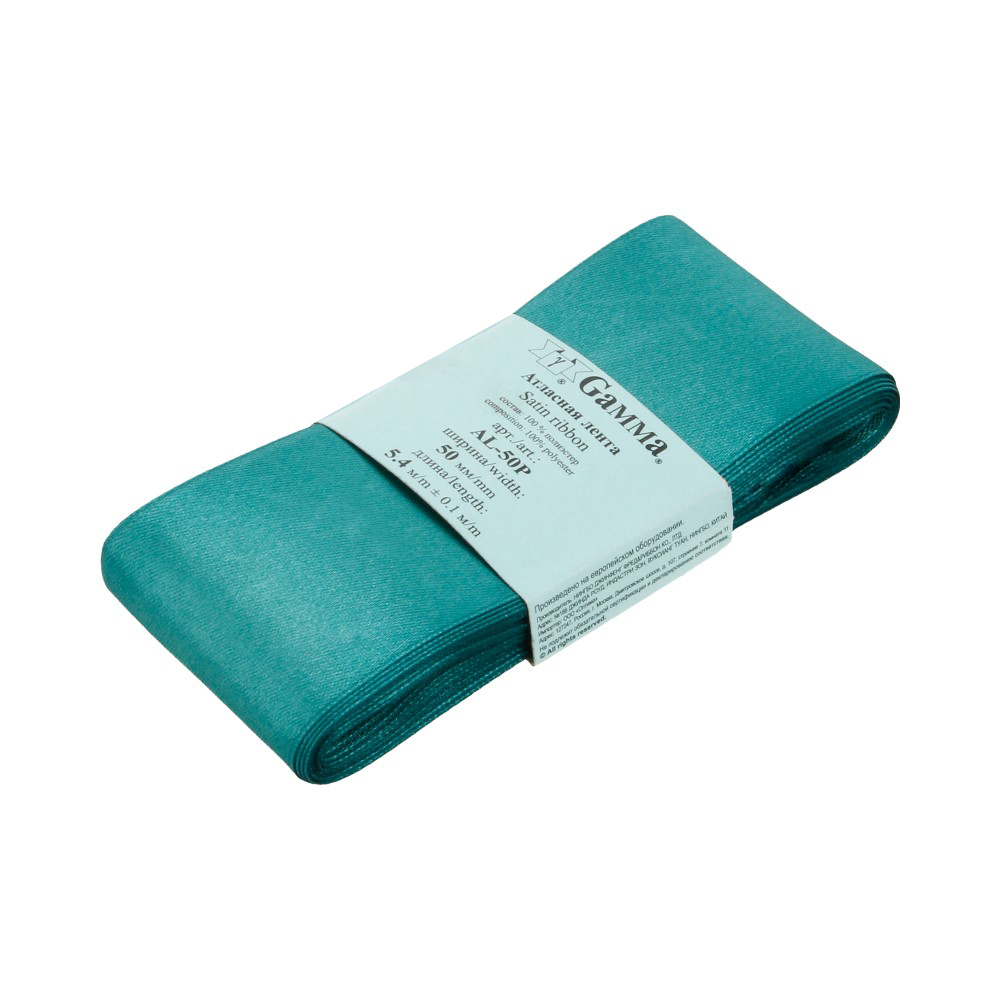 Лента атласная 1-сторонняя 50.0 мм / 5 шт по 5.4 метра, №106 т.зеленый, Gamma AL-50P