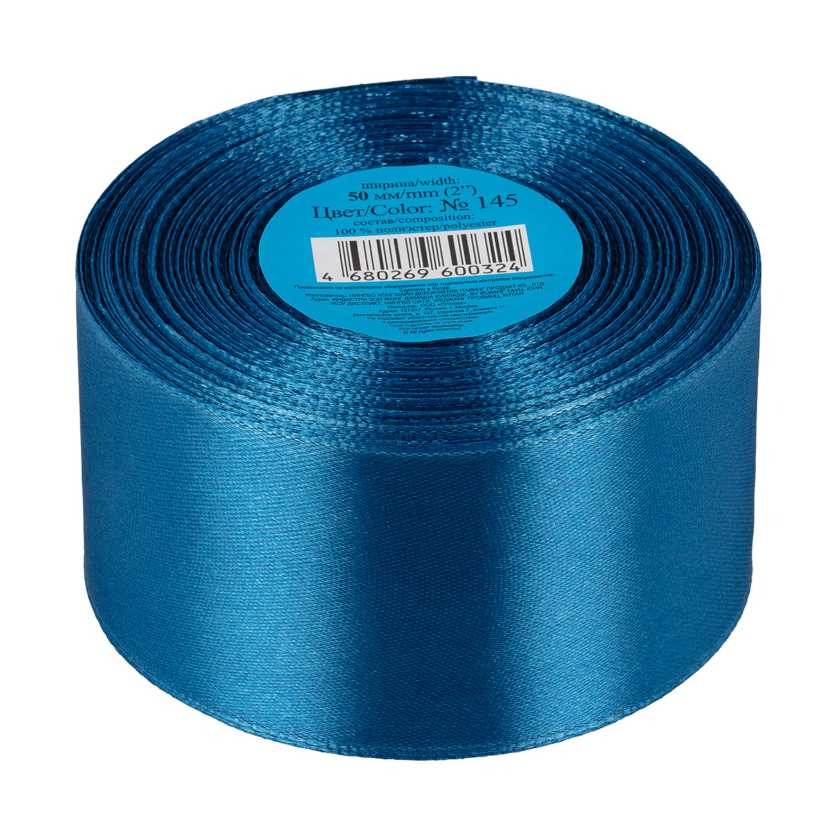 Лента атласная 1-сторонняя 50.0 мм / 33±2 метра, №145 сине-серый, в термоплёнке, Gamma