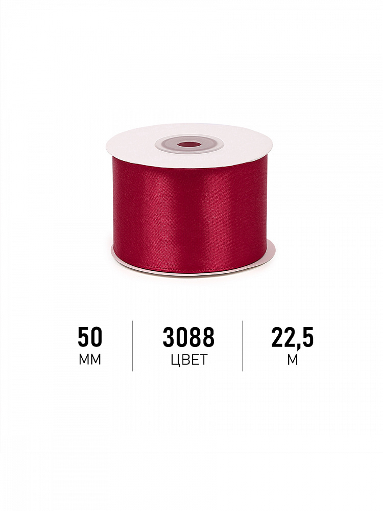 Лента атласная 1-сторонняя 50.0 мм / 22.5±1 метра, 3088 т.бордовый, Magic4Hobby