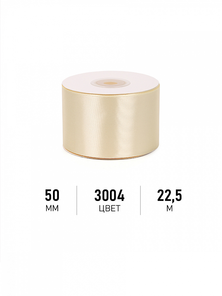 Лента атласная 1-сторонняя 50.0 мм / 22.5±1 метра, 3004 св.кремовый, Magic4Hobby