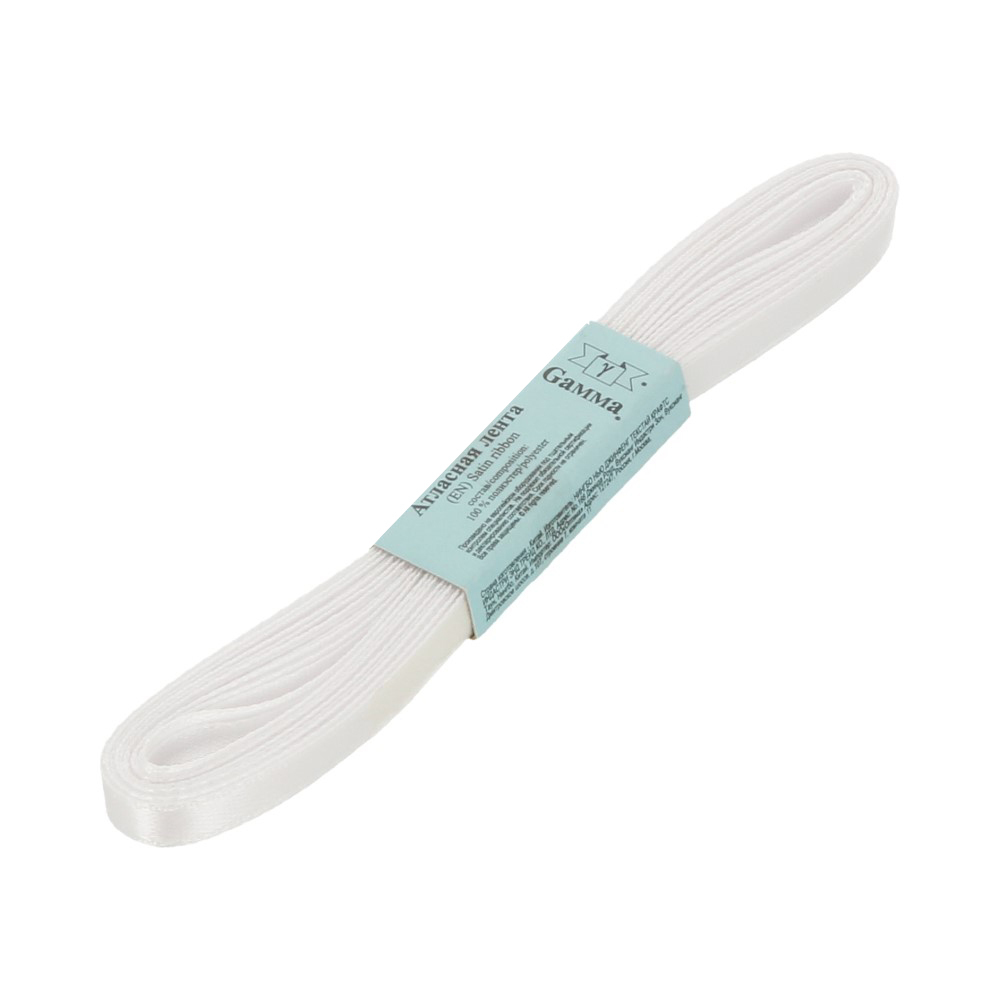 Лента атласная 1-сторонняя 6.0 мм / 10 шт по 5.4 метра, №001 белый, Gamma AL-6P