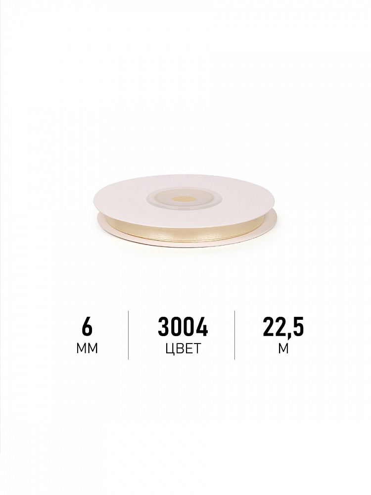 Лента атласная 1-сторонняя 6.0 мм / 22.5±1 метра, 3004 св.кремовый, Magic4Hobby