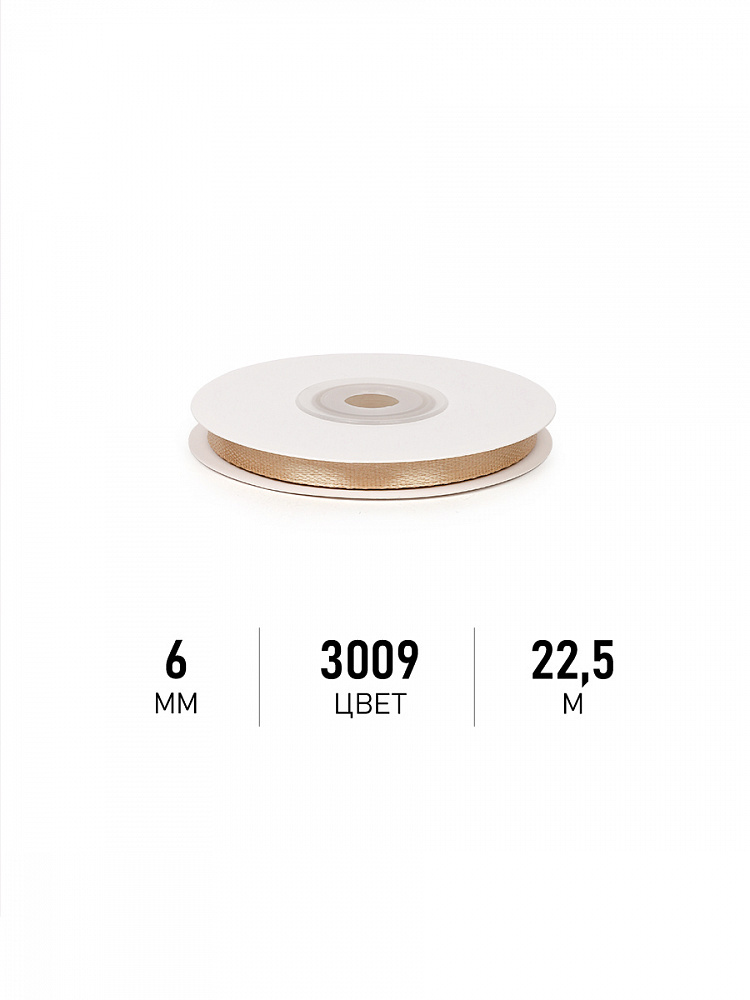 Лента атласная 1-сторонняя 6.0 мм / 22.5±1 метра, 3009 бежевый, Magic4Hobby