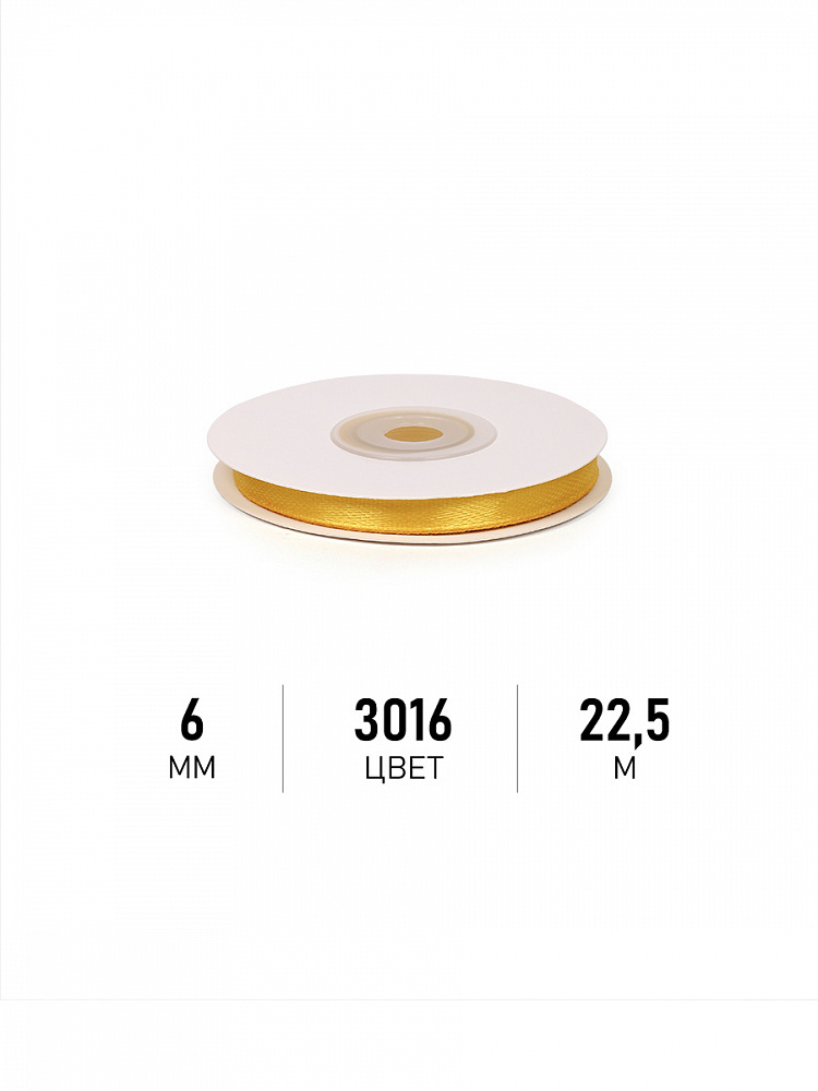 Лента атласная 1-сторонняя 6.0 мм / 22.5±1 метра, 3016 т.желтый, Magic4Hobby