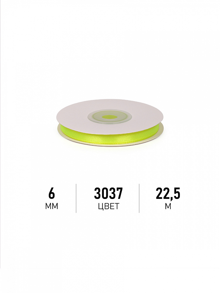 Лента атласная 1-сторонняя 6.0 мм / 22.5±1 метра, 3037 ярк.салатовый, Magic4Hobby