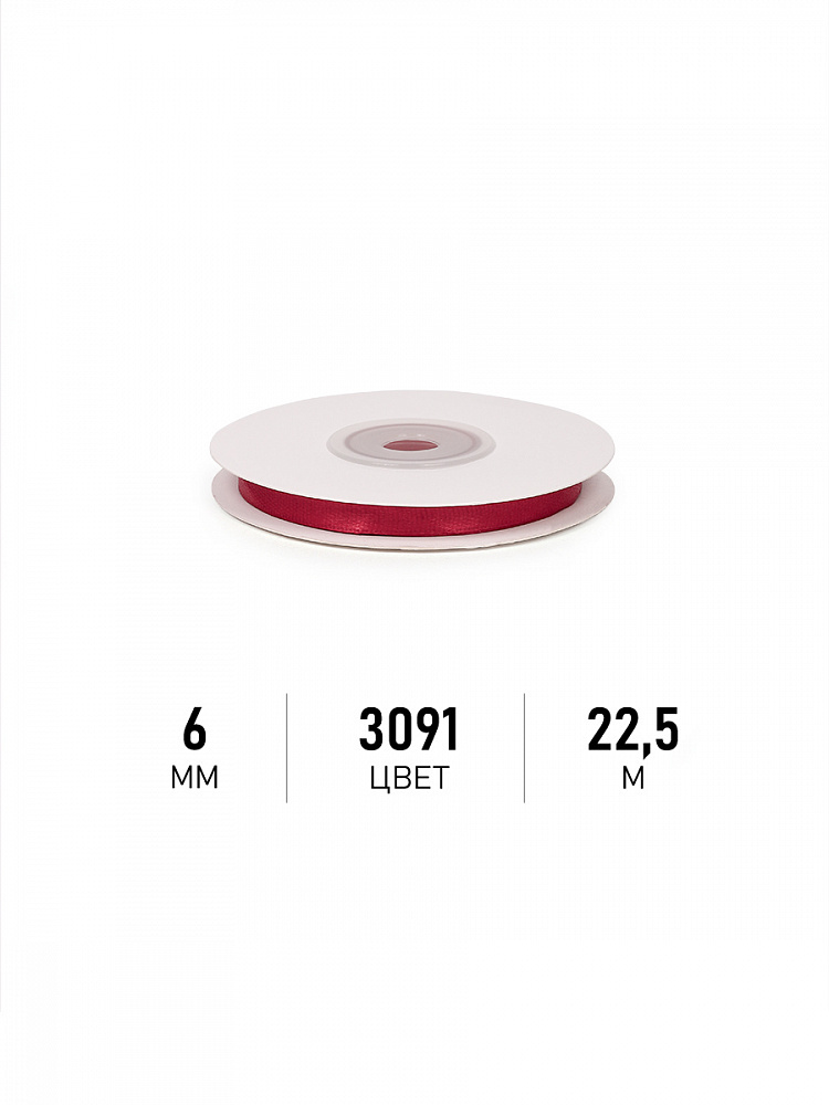 Лента атласная 1-сторонняя 6.0 мм / 22.5±1 метра, 3091 т.красный, Magic4Hobby