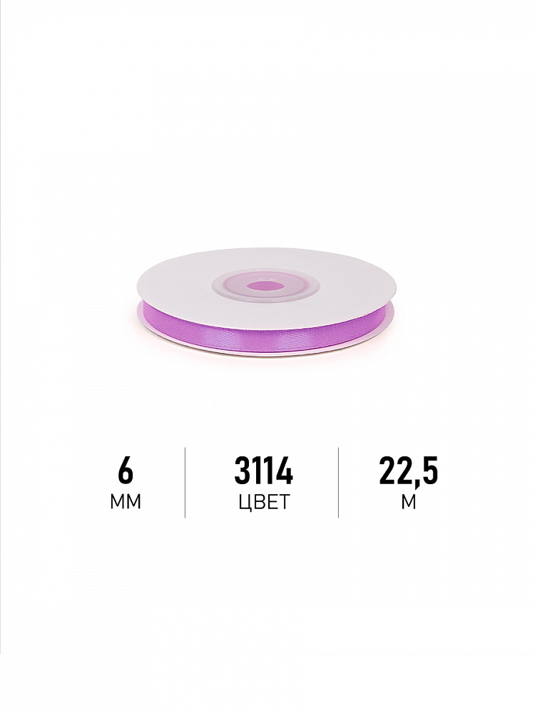 Лента атласная 1-сторонняя 6.0 мм / 22.5±1 метра, 3114 фиолетовый, Magic4Hobby