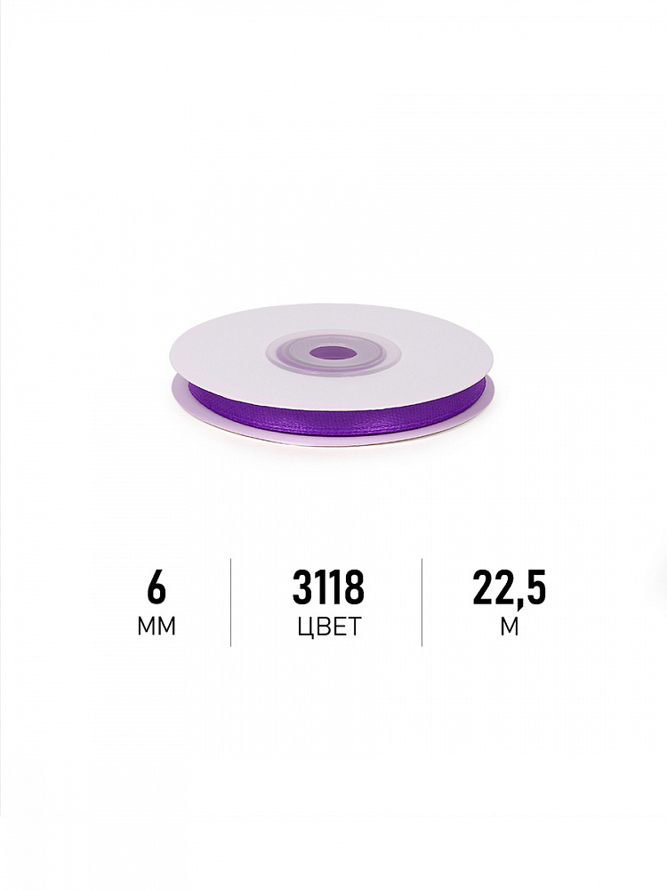 Лента атласная 1-сторонняя 6.0 мм / 22.5±1 метра, 3118 фиолетовый, Magic4Hobby