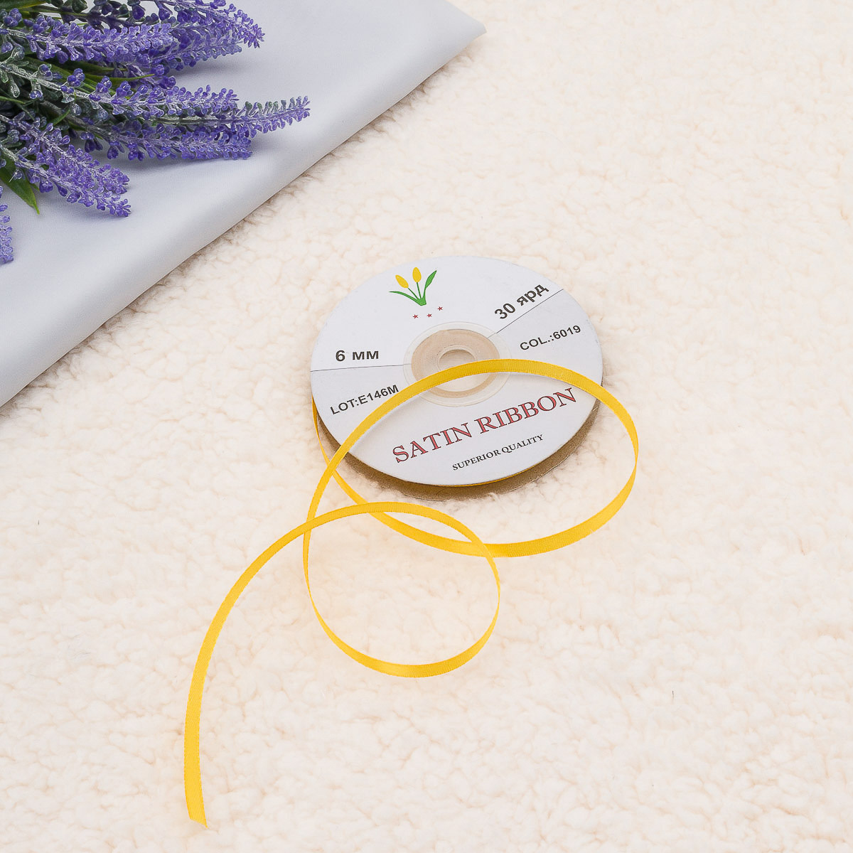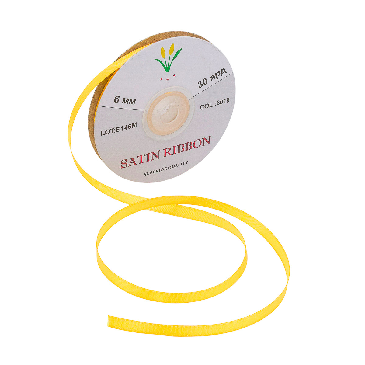 Лента атласная 1-сторонняя 6.0 мм / 27.4±2 метров, 6019, 040 т желтый, Globus