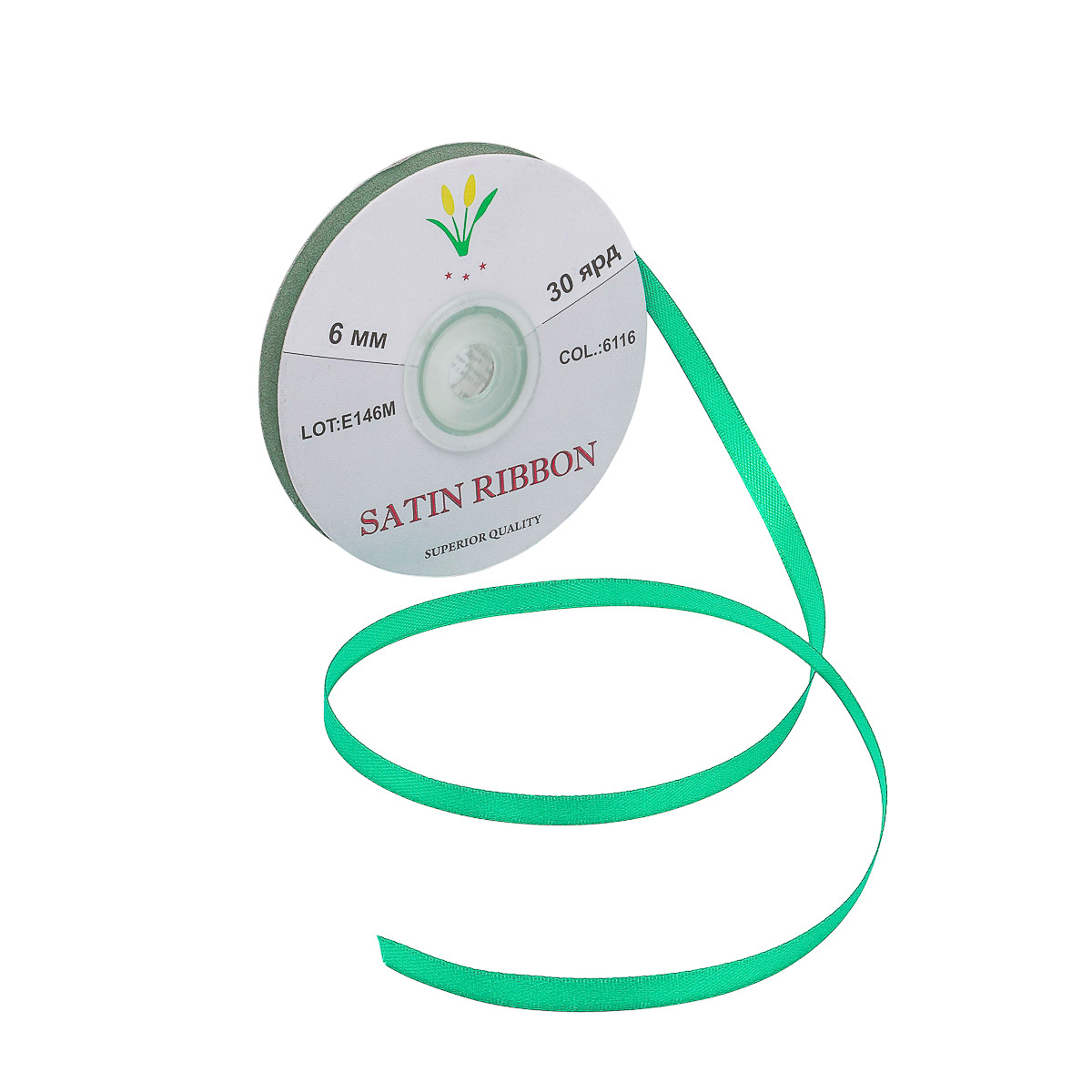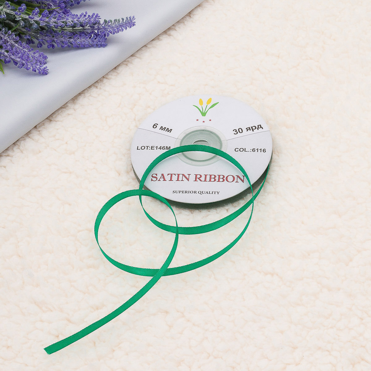 Лента атласная 1-сторонняя 6.0 мм / 27.4±2 метров, 6116, 093 т. изумрудный, Globus