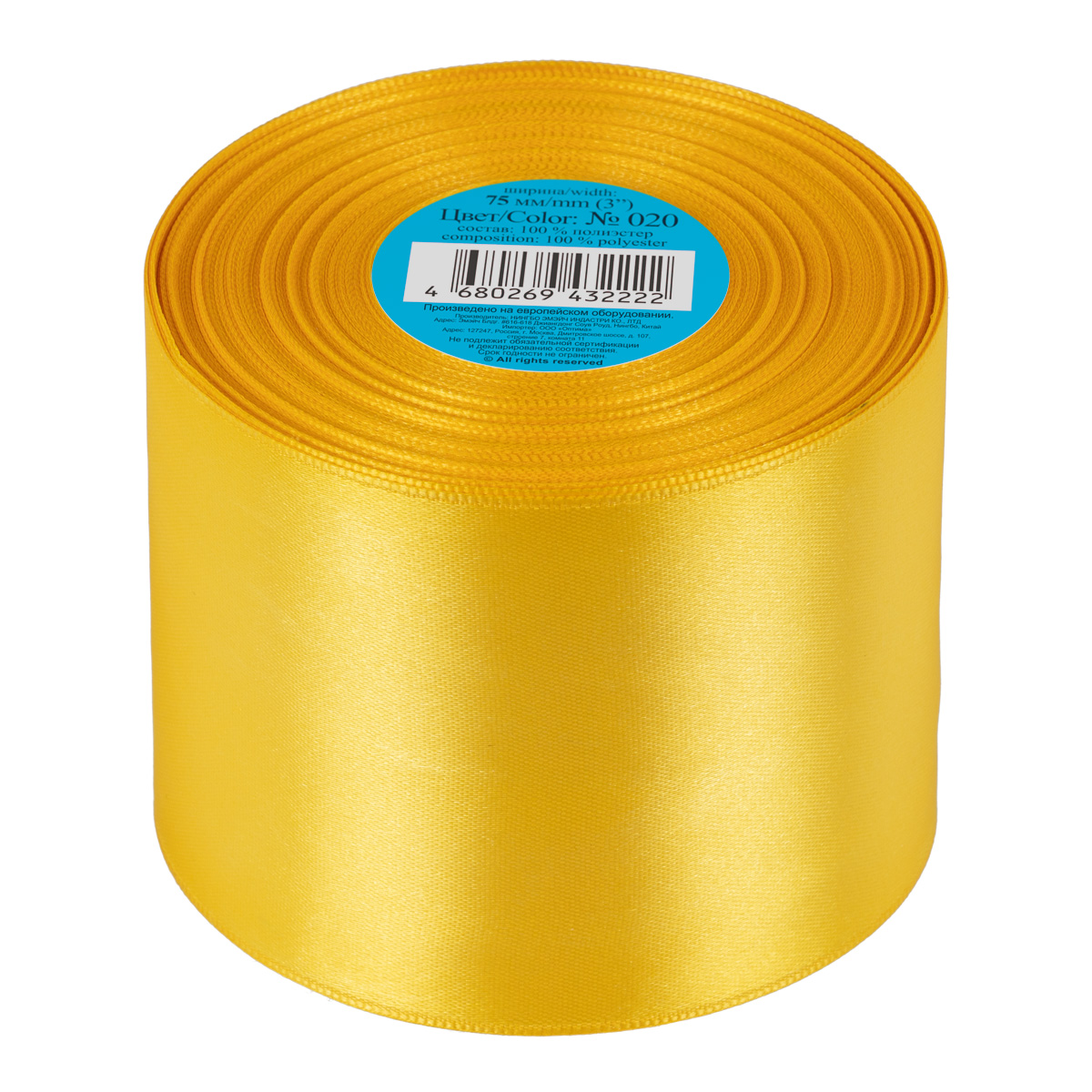 Лента атласная 1-сторонняя 75.0 мм / 33±2 метра, №020 желтый, в термоплёнке, Gamma