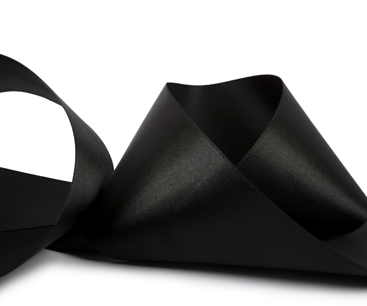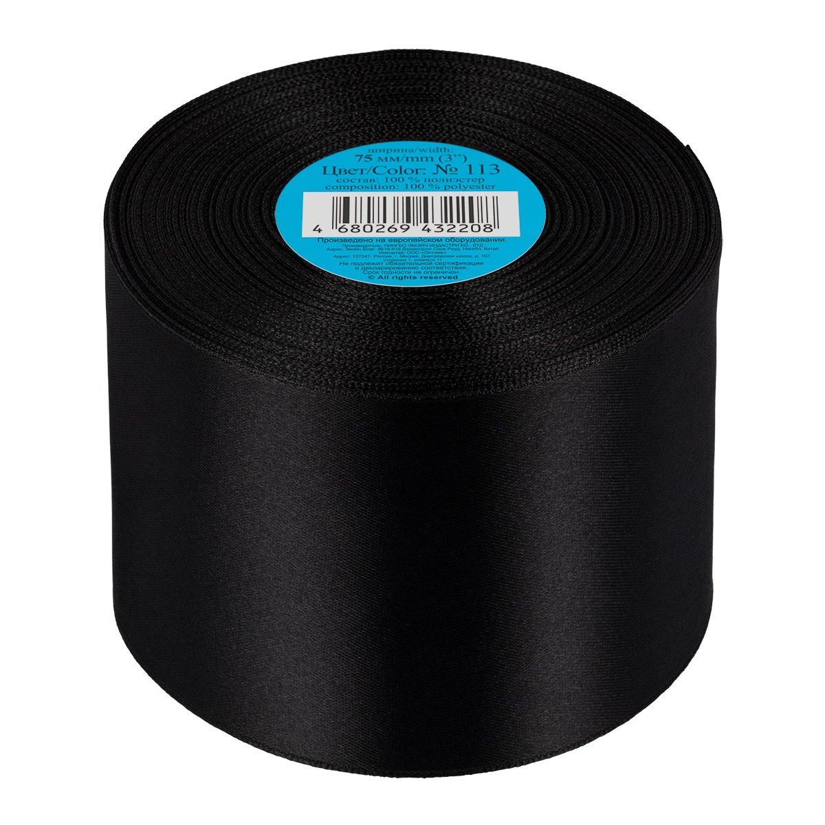 Лента атласная 1-сторонняя 75.0 мм / 33±2 метра, №113 черный, в термоплёнке, Gamma