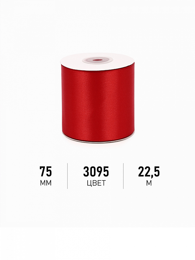 Лента атласная 1-сторонняя 75.0 мм / 22.5±1 метров, 3095 красный, Magic4Hobby