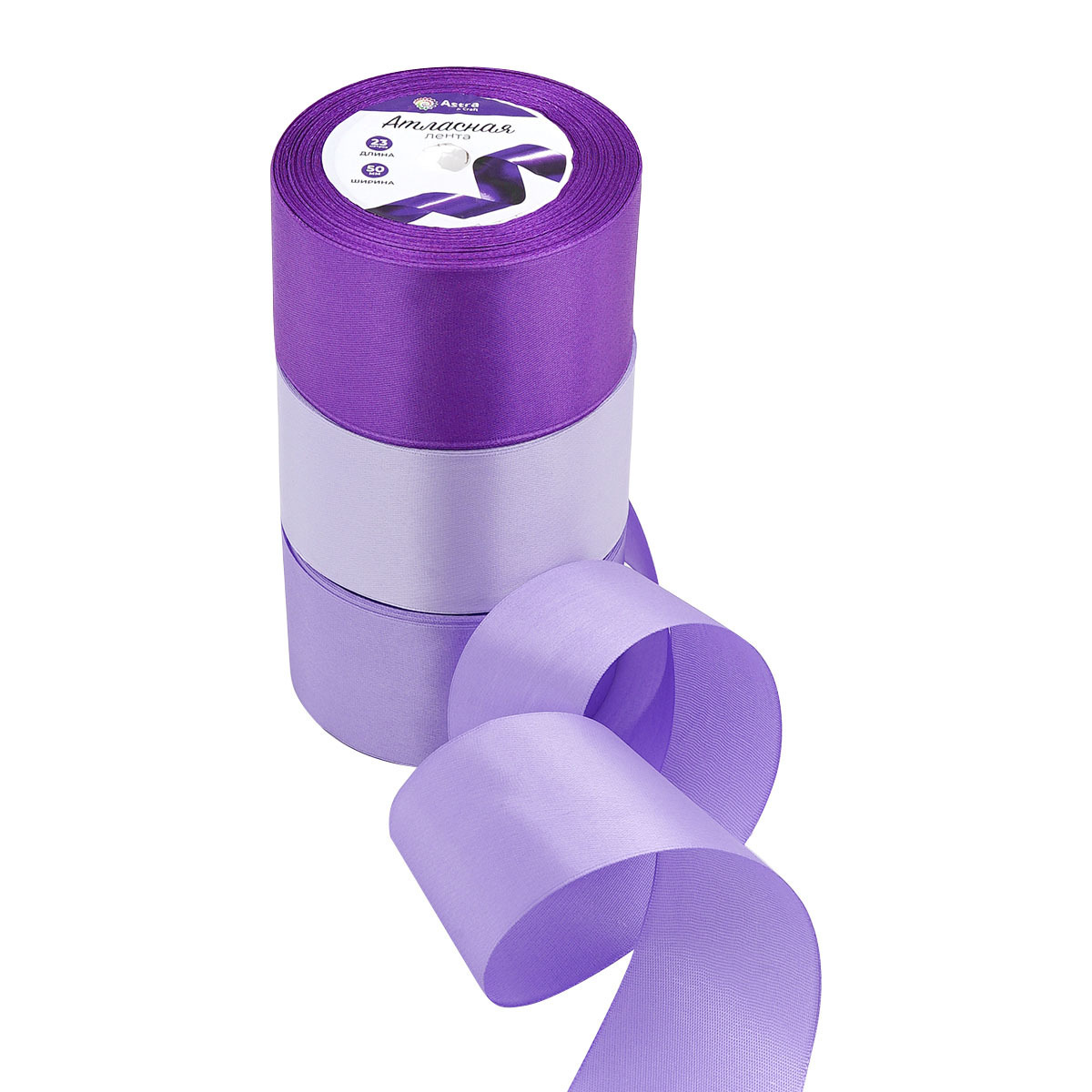 Набор атласных лент 3 цвета по 50.0 мм / 23 метра, фиолетовый микс