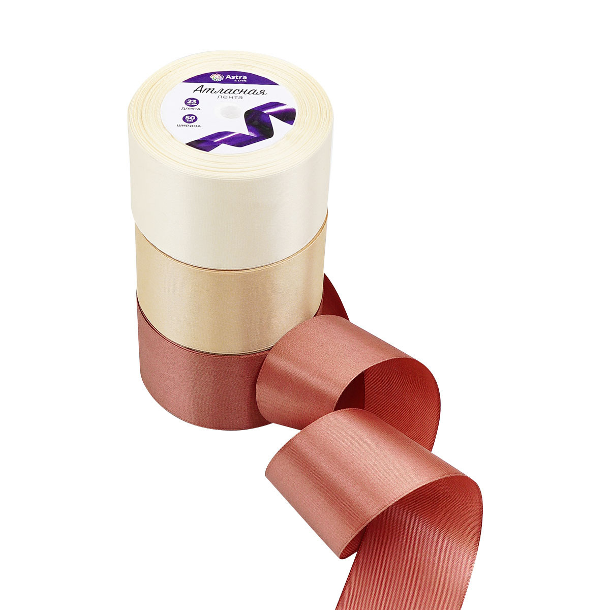 Набор атласных лент 3 цвета по 50.0 мм / 23 метра, коричневый микс