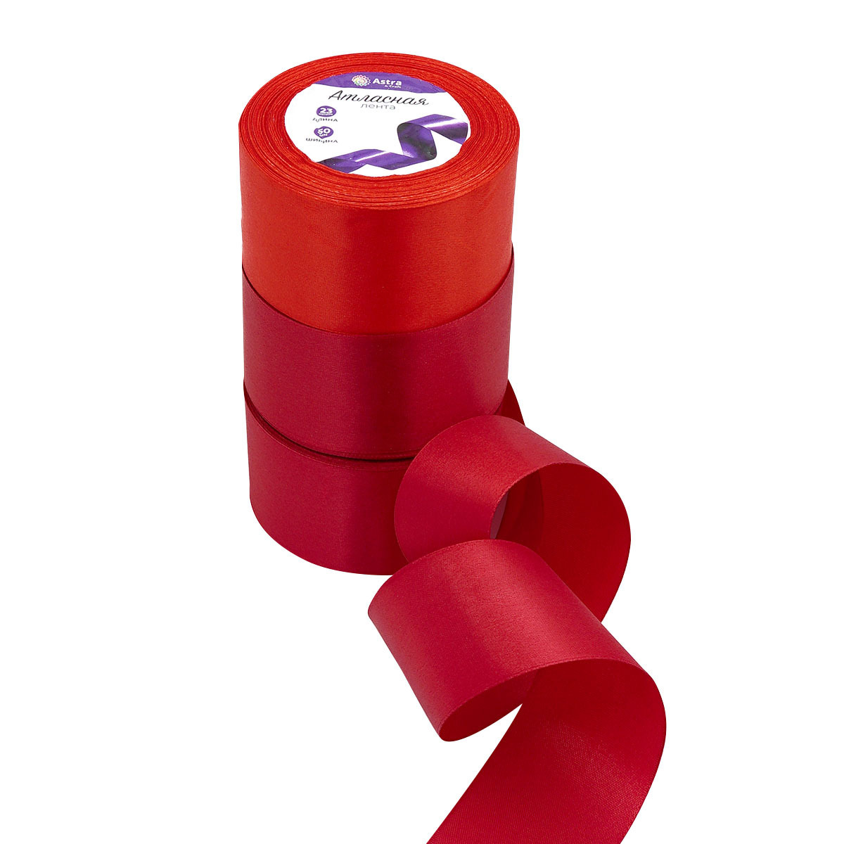 Набор атласных лент 3 цвета по 50.0 мм / 23 метра, красный микс