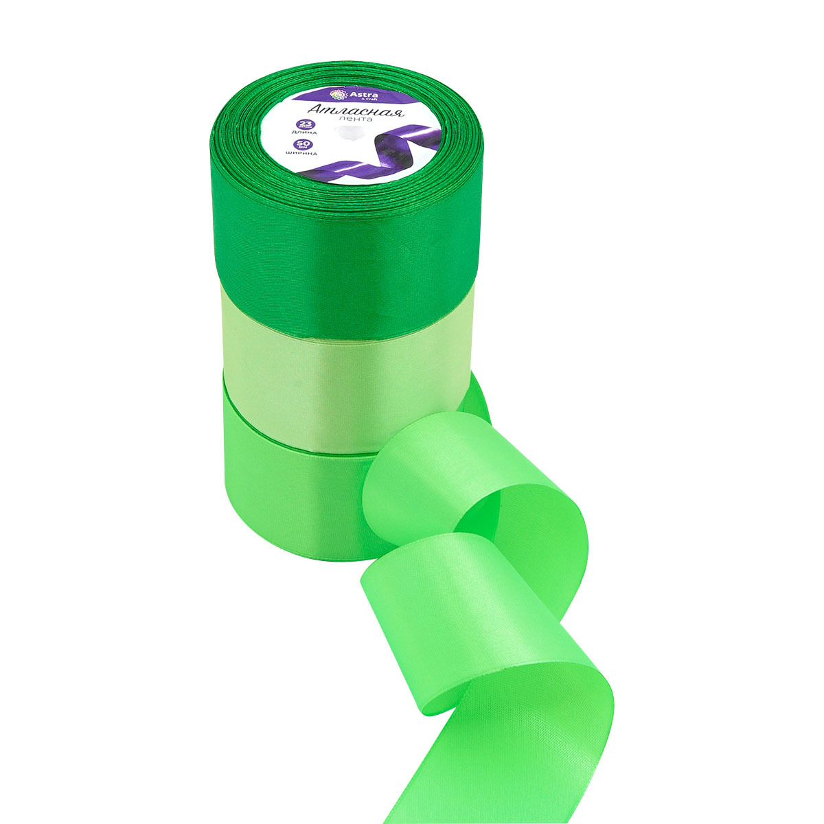 Набор атласных лент 3 цвета по 50.0 мм / 23 метра, зеленый микс