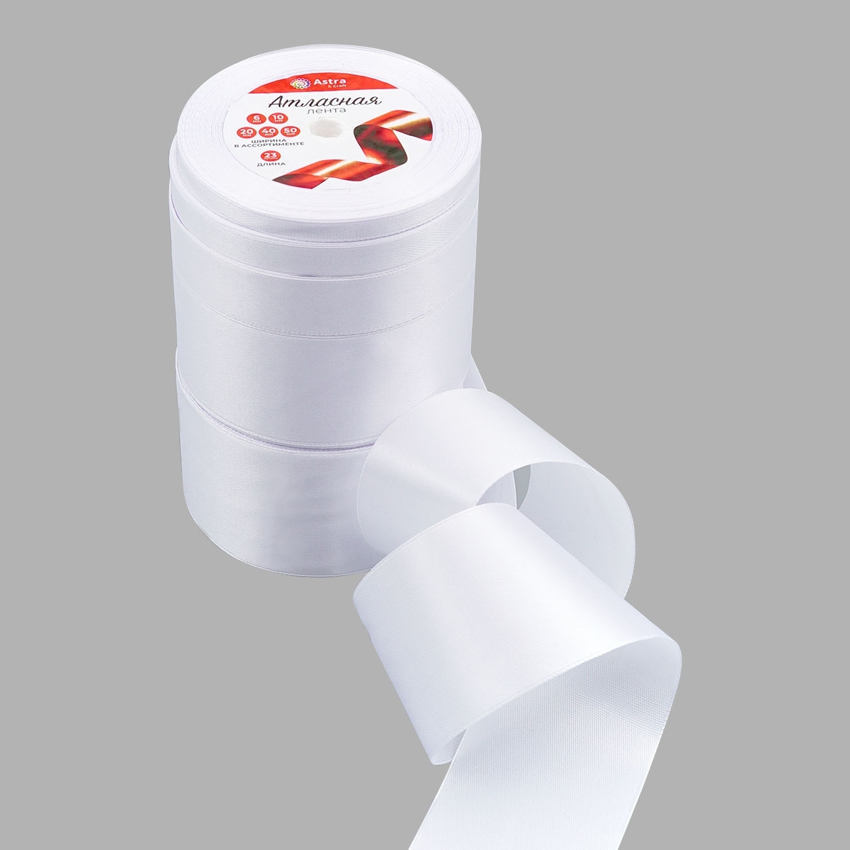 Набор атласных лент 5 размеров 6.0 мм, 10.0 мм, 20.0 мм, 40.0 мм, 50.0 мм / 23 метра, белый