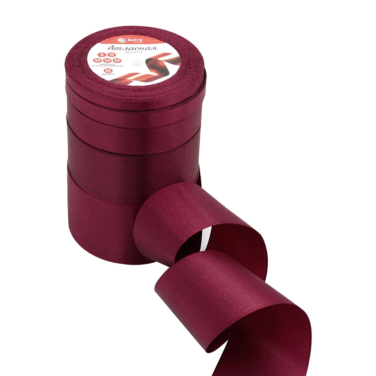 Набор атласных лент 5 размеров 6.0 мм, 10.0 мм, 20.0 мм, 40.0 мм, 50.0 мм / 23 метра, бордовый